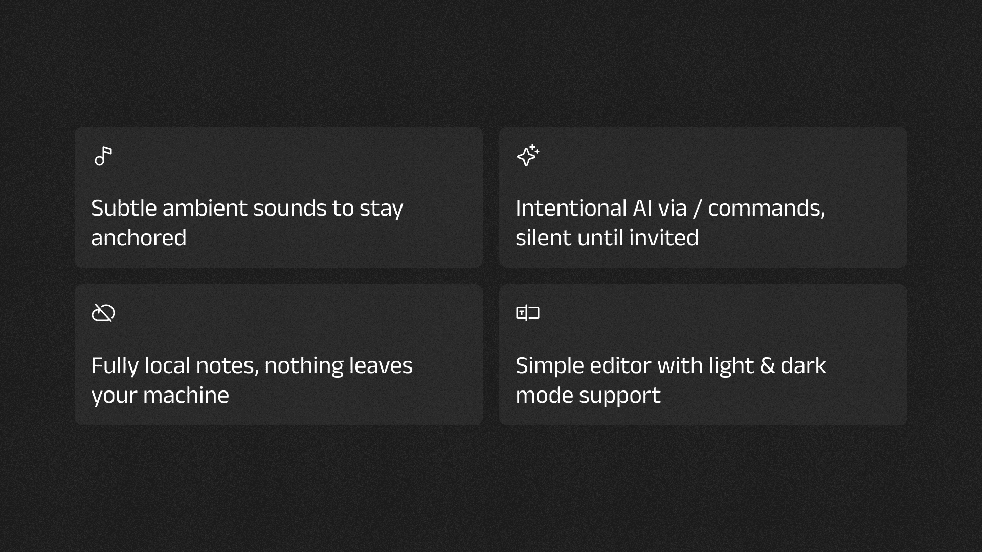 I worked end-to-end across product thinking, interaction design, and implementation—intentionally keeping scope constrained and decisions deliberate. Every feature was evaluated against a single question: does this help the writer stay with the sentence they’re writing?